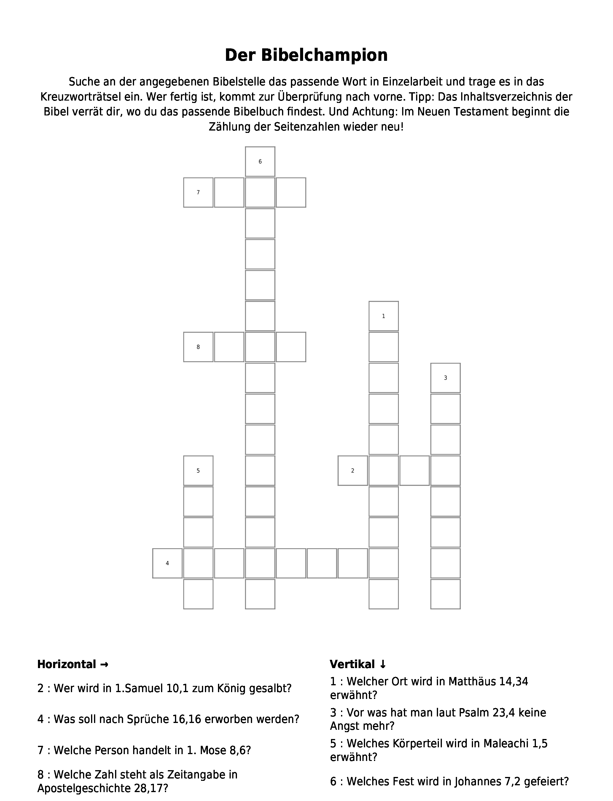 4teachers Bibel Kreuzwortratsel